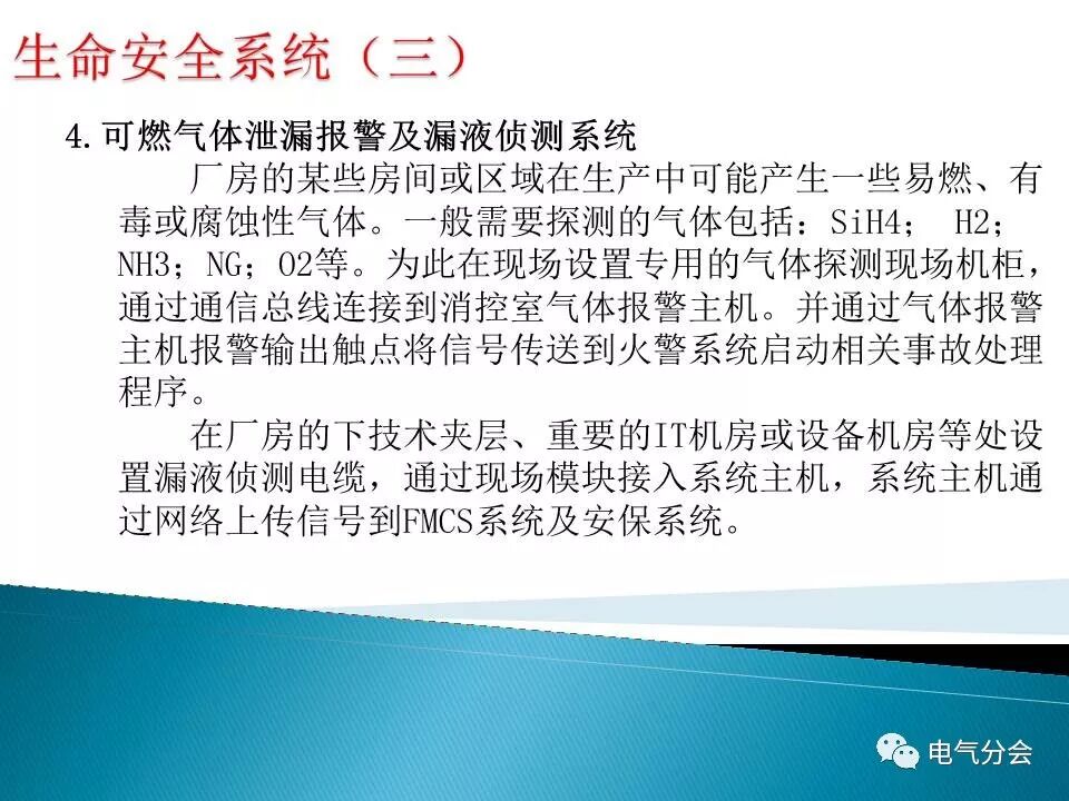8)生命安全系統(火警及聯動掌控、極初期煙霧探測、氣體泄漏報警、廣播及消防網絡等)本工程采用消防掌控室結構的集中報警系統設計。根據功能及管理進行分區,設置集中、區域報警主機并經過光纜連接組網,除系統設備間的專用通訊連接外,設置專用消防網絡供需要進行網絡傳輸的消防設備(極初期煙霧探測系統、應急廣播系統)運用;在潔凈區、IT機房、變電站、FMCS站房等重要站房設置極初期煙霧探測報警器,報警器經過就地的報警觸點把報警信號傳送到火警輸入模塊,同期在極初期的集中報警掌控主機上完成報警表示;廣播主機設置在消防掌控室,在廣播負荷集中區域設置現場機柜,采用多路100伏定壓輸出驅動本區域揚聲器。