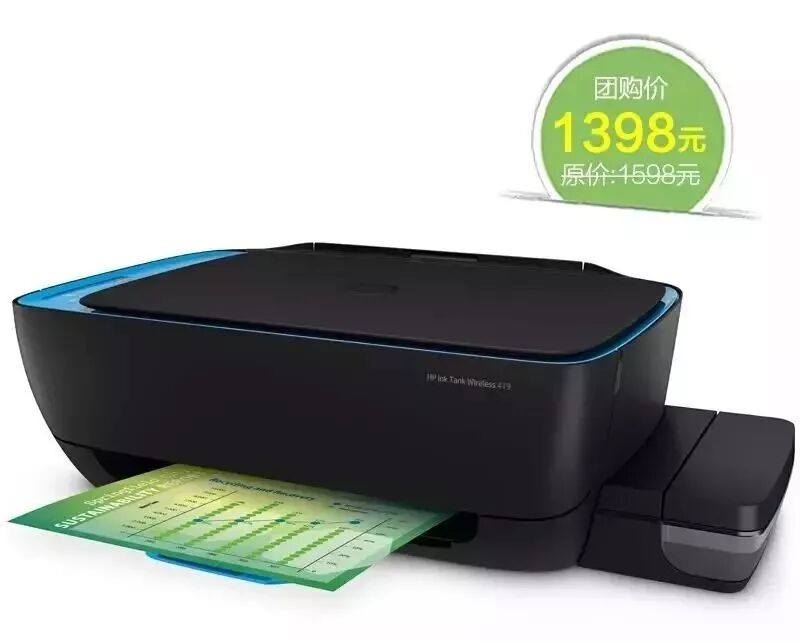 團品:惠普(HP) 419集打印、復印、掃描于一體,神便利的無線打印掃描功能,不管是打試卷還是打照片都超級方便,還能掃描戶口本一類的厚介質……打印無限量,尺寸不設限,能滿足一切你能想到的打印需要,被叫作為是性價比最高的打印機。