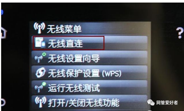 “無(wú)線直連”功能,便是指打印機(jī)自己會(huì)發(fā)射一個(gè)WIFI無(wú)線網(wǎng)絡(luò),手機(jī)經(jīng)過連接打印機(jī)自己的SSID,來完成打印工作。來看一下連接過程: