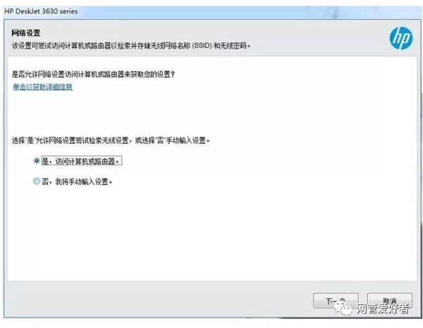 點(diǎn)擊“下一步”,選取“是”準(zhǔn)許網(wǎng)絡(luò)設(shè)置嘗試檢索無(wú)線設(shè)置。